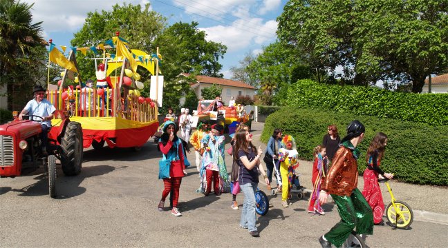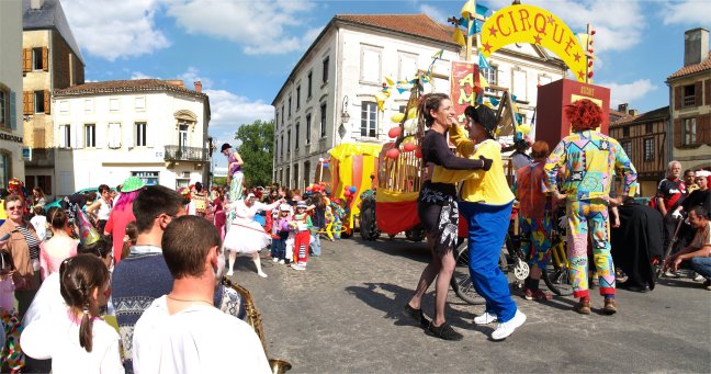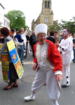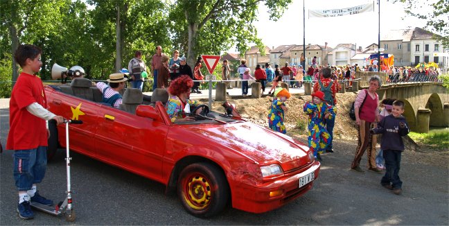 Dans la rue De Cassagnac, la "Ferrari déjantée et sonorisée" venait à la rencontre du cortège. En véritable chef d'orchestre, Cathy COSTES commentait le déroulement de la Grande Parade, annonçait au micro les prochaines manifestations et remerciait les associations qui se sont mobilisées. Sur la place de l'église, les différents acteurs de la Parade rejoignaient le public venu nombreux en cette journée ensoleillée. |
