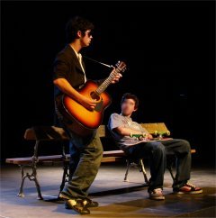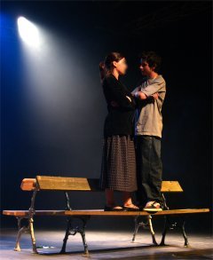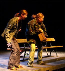 BROCELIANDE'S PARK est un spectacle écrit et mis en scène par Cyril PUERTOLAS de la Compagnie "La Petite Pierre", secondé par Carmela ACUYO. Dans un parc en béton, un soir d'été, des adolescents se retrouvent. Sont également au rendez-vous Shakespeare et les Chevaliers de la Table Ronde. De scènes réalistes en passages oniriques c'est, en filigrane, de quête d'identité dont il est question. Mais tout ça évidemment sans se prendre au sérieux. |