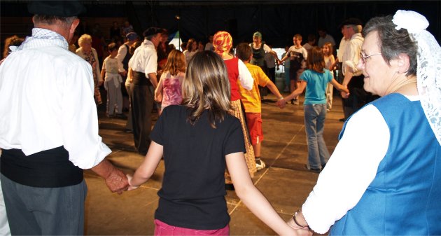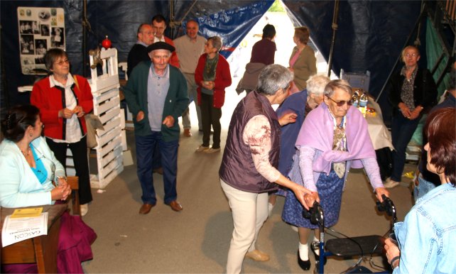A l'issue du pique-nique, musique et danses du groupe folklorique "Lous Aynats de Gragnos" enchantaient les Résidents des maisons de retraite, leurs Accompagnants et les Enfants des Ecoles. Ces dames poussaient leur conscience professionnelle jusqu'à présenter leurs costumes de paysannes au public, n'hésitant pas à soulever leurs robes pour faire découvrir leurs surprenants dessous. Cette superbe journée organisée par la CITE ST JOSEPH s'achevait en apothéose avec l'initiation des Enfants et de leurs Maîtres à des danses traditionnelles, fabuleux échange entre générations, heureux d'être ensemble sur la scène de CIRCUITS ... Jugez vous-même sur les photos qui suivent ! |
