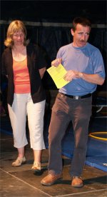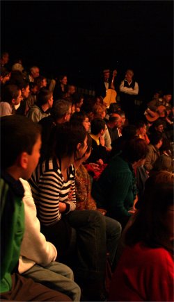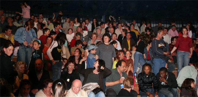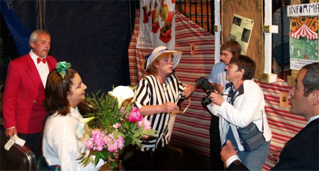 Beaucoup de monde sous le chapiteau pour cette inauguration et, au micro, Marie-Jo CHAUVIN et Cathy COSTES pour présenter les différents groupes d'amateurs et de bénévoles qui se produisaient successivement sur la scéne de CIRCUITS Nomades : les Ecoles de DANSE et de MUSIQUE de PLAISANCE, CIRCA'DOUR, les DANDY'S de l'ARMAGNAC et SAMBA'DOUR. |