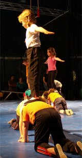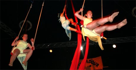 A l'issue de 3 jours de stage sur le thème de l'Aérien, CIRC'ADOUR a présenté un spectacle de cirque sous le chapiteau de CIRCUITS Nomades en collaboration avec l'association Lez'arts Nomades au profit de Dia au Cap Vert, asso pour la création de centre initiative jeunesse. |