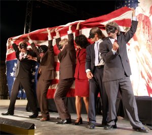 EMBEDDED raconte l'histoire des journalistes "embarqués" au sein de l'armée américaine d'octobre 2002 à juin 2003 à l'occasion du conflit avec l'Irak. La pièce dévoile la complicité des grands médias qui ont couvert les mensonges des pouvoirs politique, militaire et industriel américains pour leur permettre de réaliser les projets décidés pour l'Irak. Le Petit Théâtre de Pain nous rappelle que, "même si la situation des médias en France et en Europe n'est pas si caricaturale, la manipulation et l'instrumentalisation ne sont pas pour autant des faits exclusivement américains". |