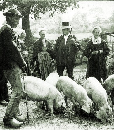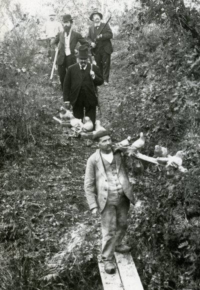 Après avé tuat lo porc, los omis partivan au bosc,