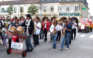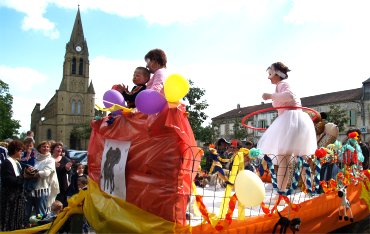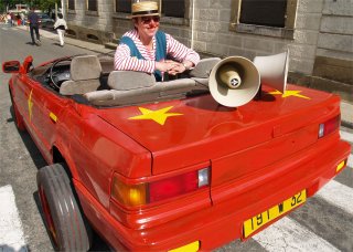 Dans la rue De Cassagnac, la "Ferrari déjantée et sonorisée" venait à la rencontre du cortège. En véritable chef d'orchestre, Cathy COSTES commentait le déroulement de la Grande Parade, annonçait au micro les prochaines manifestations et remerciait les associations qui se sont mobilisées. Sur la place de l'église, les différents acteurs de la Parade rejoignaient le public venu nombreux en cette journée ensoleillée. |