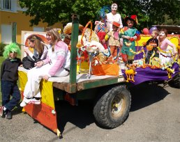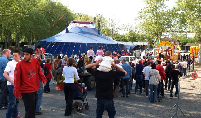 Le samedi 29 avril 2006, le soleil était au rendez-vous pour l'inauguration de plusieurs semaines d'animations de CIRCUITS Nomades et des associations locales qui ont eu lieu à PLAISANCE DU GERS sous le chapiteau installé sur la place des Arènes. Après une séance de maquillage au collège, tout a commencé à 16h par la GRANDE PARADE qui a démarré du Centre de Loisirs et de la maison de retraite CITE ST JOSEPH. |