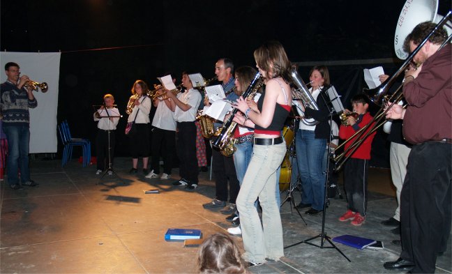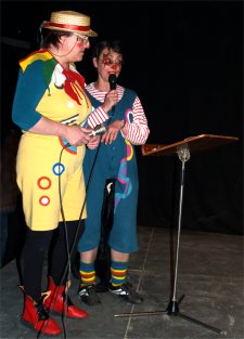 Beaucoup de monde sous le chapiteau pour cette inauguration et, au micro, Marie-Jo CHAUVIN et Cathy COSTES pour présenter les différents groupes d'amateurs et de bénévoles qui se produisaient successivement sur la scéne de CIRCUITS Nomades : les Ecoles de DANSE et de MUSIQUE de PLAISANCE, CIRCA'DOUR, les DANDY'S de l'ARMAGNAC et SAMBA'DOUR. |