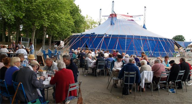 Mis en bouche par les chants des Jeunes du Collège et de Claudie MOTHE, des Résidents des maisons de retraite présentes n'ont pas hésité à intervenir au micro proposé par Thierry pour commenter la dure réalité de la vie Autrefois et pour pousser la chansonnette ... en gascon bien entendu ! Ensuite, nos Aînés sont allés se restaurer à l'ombre des platanes. |