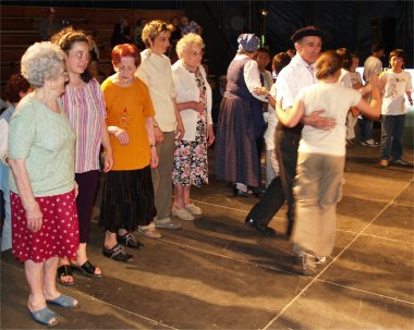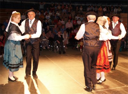A l'issue du pique-nique, musique et danses du groupe folklorique "Lous Aynats de Gragnos" enchantaient les Résidents des maisons de retraite, leurs Accompagnants et les Enfants des Ecoles. Ces dames poussaient leur conscience professionnelle jusqu'à présenter leurs costumes de paysannes au public, n'hésitant pas à soulever leurs robes pour faire découvrir leurs surprenants dessous. Cette superbe journée organisée par la CITE ST JOSEPH s'achevait en apothéose avec l'initiation des Enfants et de leurs Maîtres à des danses traditionnelles, fabuleux échange entre générations, heureux d'être ensemble sur la scène de CIRCUITS ... Jugez vous-même sur les photos qui suivent ! |